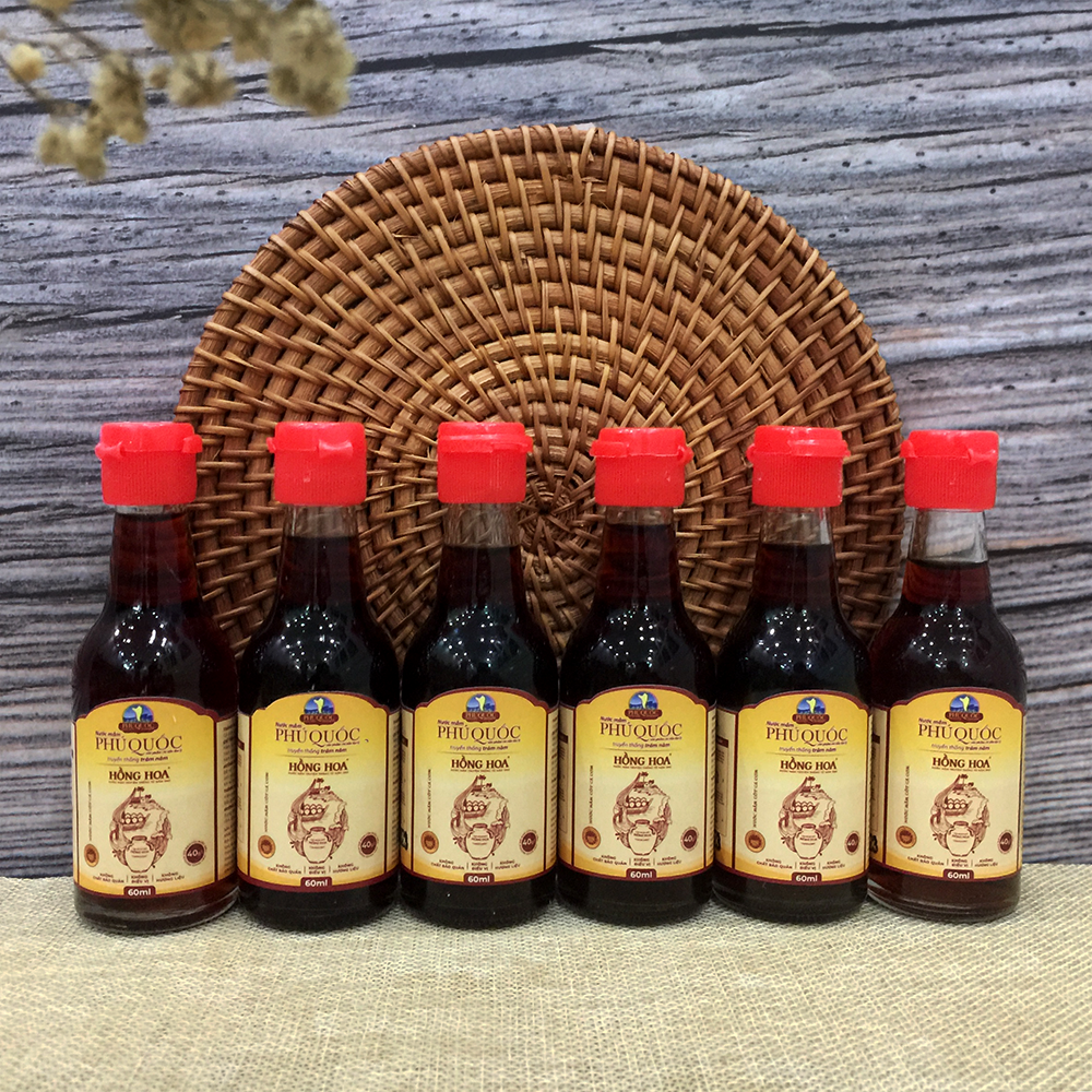 Nước Mắm Nhĩ Cá Cơm Truyền Thống Phú Quốc Hồng Hoa 40 Độ Đạm Hộp 6 Chai Thủy Tinh 60ml